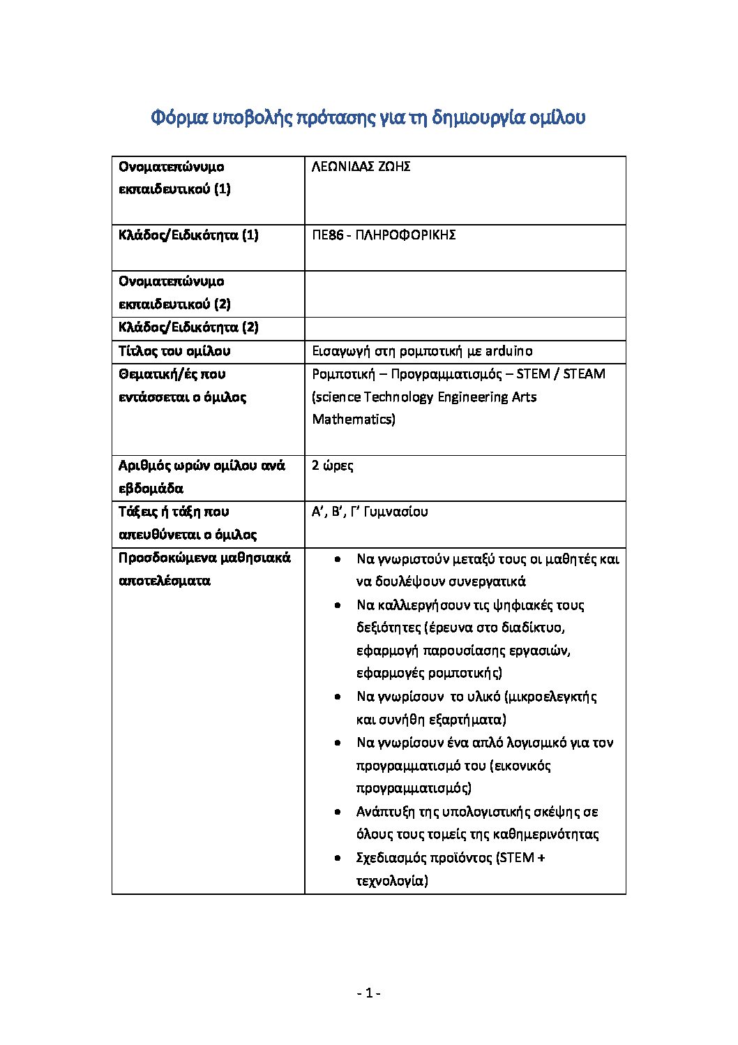 Πρόταση Δημιουργίας ομίλου Ρομποτικής 2023 – 24 Λ.Ζώης .docx23/10/2023Written by Kolokotroni Leave a Comment Total Page Visits: 373 - Today Page Visits: 2