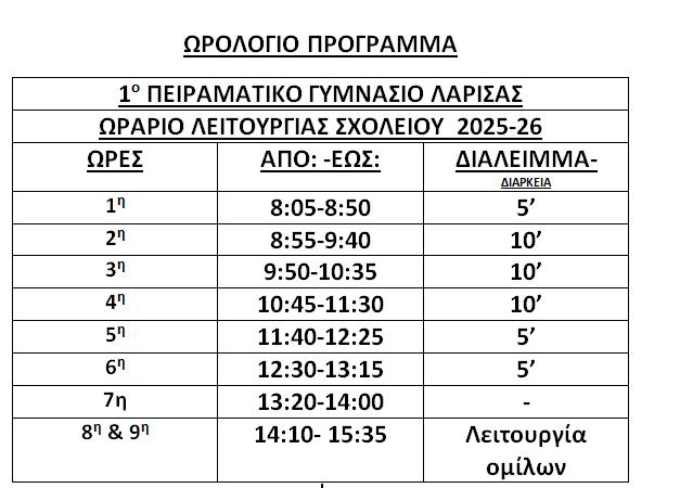 ΩΡΑΡΙΟ ΛΕΙΤΟΥΡΓΙΑΣ27/09/2025Written by Kolokotroni Leave a Comment Total Page Visits: 53 - Today Page Visits: 1