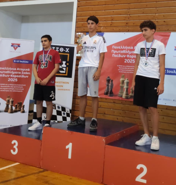 Στα Πανελλήνια Ατομικά Πρωταθλήματα Παίδων-Κορασίδων 2025, που πραγματοποιήθηκαν από τις 6 έως τις 12 Ιουλίου στη Χ.Α.Ν. Θεσσαλονίκης, ο μαθητής μας Γιάννης Τσελέπης, μετά από εξαιρετική εμφάνιση, κατέκτησε την πρώτη θέση και αναδείχθηκε αήττητος Πρωταθλητής Ελλάδος στην κατηγορία “Αγόρια Κ14” (ηλικίες 13-14 ετών), συγκεντρώνοντας 7,5 βαθμούς σε 9 αγώνες με 6 νίκες και 3 ισοπαλίες.