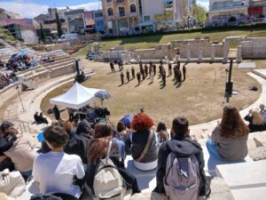 Μια εξαιρετική παράσταση αρχαίου δράματος από …Ιταλούς μαθητές παρακολούθησαν την Παρασκευή 28 Μαρτίου μαθητές της Γ΄ Γυμνασίου και η θεατρική ομάδα του 1ου Πειραματικού Γυμνασίου Λάρισας, στο πλαίσιο του φεστιβάλ «Εφήβων Δρώμενα». Οι μαθητές είχαν την ευκαιρία να παρακολουθήσουν την παράσταση «Χοηφόροι» του Αισχύλου στο Α΄ Αρχαίο θέατρο της πόλης μας, βιώνοντας τα συναισθήματα ενός θεατή της αρχαιότητας. Αν και ήταν εξ ολοκλήρου στα ιταλικά, καθώς συμμετείχαν μαθητές του Λυκείου «Nicola Pizi» από την πόλη Palmi της Ιταλίας, η γλώσσα δε στάθηκε εμπόδιο.